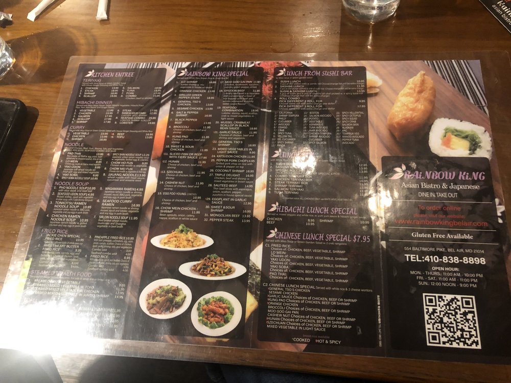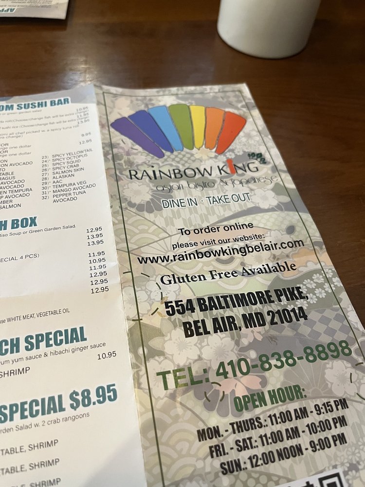 Welcome to Rainbow King, your go-to destination for delightful Japanese cuisine in Bel Air, MD. This charming eatery offers a casual yet warm ambiance, perfect for family outings or a cozy date night. With a diverse menu, Rainbow King excels in sushi, featuring unique rolls such as the highly recommended double spicy roll and the inventive dinosaur eggs that leave a memorable impression.
